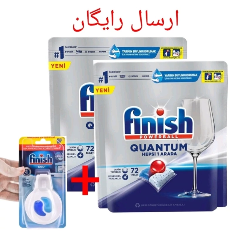 پک دو عددی قرص ماشین ظرفشویی فینیش کوانتوم تاریخ جدید 72 عددی به همراه یک بوگیر و ارسال رایگان