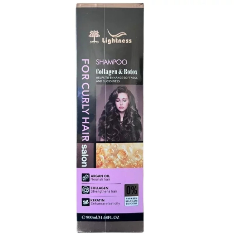 شامپو موهای فر لایتنس Lightness حاوی کلاژن و بوتاکس حجم 900 میل