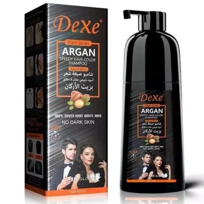 شامپو رنگ مو سیاهی طبیعی در 8 دقیقه با عصاره روغن آرگان برند دکسی DEXE در عرض چند دقیقه و بدون آسیب رساندن به موها آن ها را مشکی می کند. بسیاری از افراد موهایشان به سرعت در جوانی سفید می شود و موهای مشکی جایشان را به موهای جوگندمی در جوانی می دهند. این امر بر مزاق برخی افراد خوش نمی آید و بسیاری را آزرده خاطر می کند. اگر استفاده از رنگ ها و اسپری های مو را دوست ندارید شامپوهای گیاهی می تواند به کارتان آیند و از آن ها برای پنهان کردن موهای سفید خود استفاده کنید. نکته مهم در دوام و ماندگاری رنگ مشکی در این شامپو می باشد. این شامپو ساخت کشور انگلستان بوده رنگی کاملا ثابت و بادوام به موها می دهد و در شستشوهای بعدی تغییر رنگ نمی دهد. این محصول مناسب برای استفاده آقایان و بانوان طراحی شده است.در بازرگانی حامید که با جستجو در اینترنت با قیمت مناسب میتوانید تهیه بکنید.محتوی مخلوط شامپو و رنگ را داخل یک ظرف ریخته و به خوبی هم بزنید. (بهتر است ظرف مورد نظر فلزی نباشد) سپس بر روی موهای خشک به خوبی ماساژ دهید و اجازه دهید به مدت 5 الی 15 دقیقه بماند سپس به خوبی شستشو دهید.