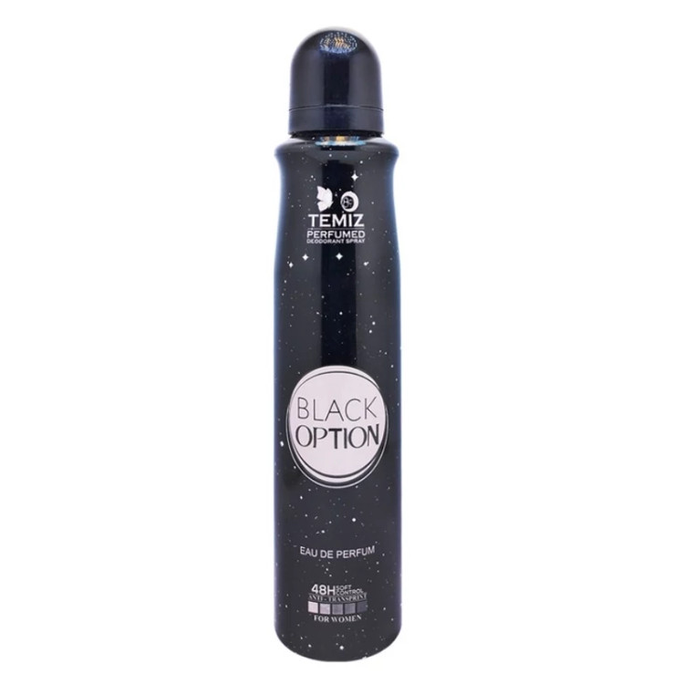 اسپری دئودورانت ضدتعریق تمیز پرفیوم مدل Black Option حجم 200 میلی لیتر