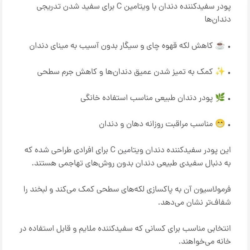 پودر سفید کننده دندان و خوشبو کننده دهان باضمانت اورجینال تاریخ جدید حاوی ویتامین سیC